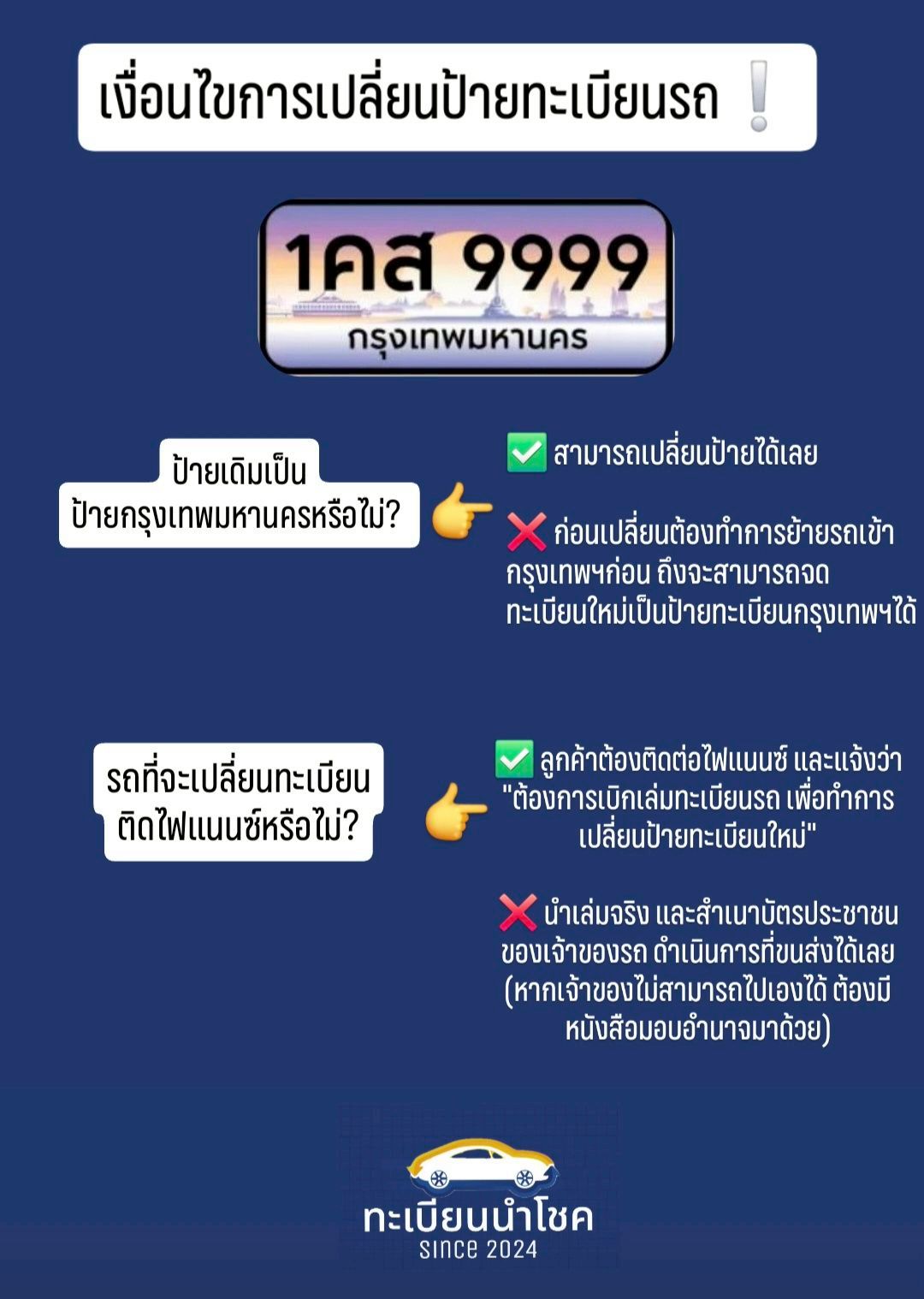 หากลูกค้าต้องการเปลี่ยนป้ายทะเบียนรถ ต้องดูว่าลูกค้าเข้าเงื่อนไขตามที่ขนส่งได้กำหนดไว้หรือไม่ ซึ่งบทความนี้ได้ยกตัวอย่างที่เป็น ป้ายทะเบียนกรุงเทพมหานคร เท่านั้น