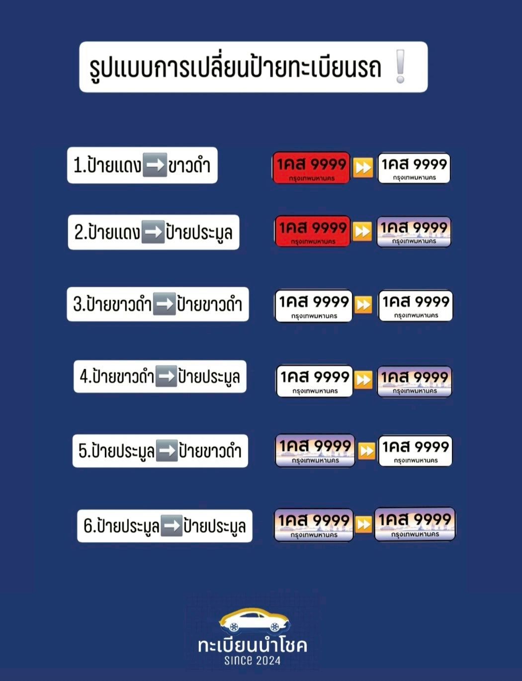 ซึ่งการเปลี่ยนทะเบียนรถคร่าวๆจะมี 6 แบบ ดังนี้ค่ะ